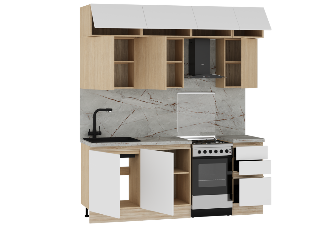 Кухня, Женева (2200*600*2456) Дуб Палермо/Белый матовый